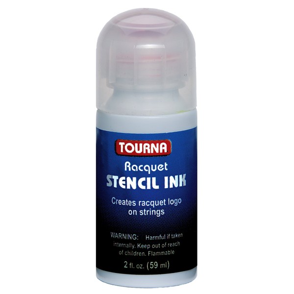 Tourna Racquet Stencil Ink designed for stenciling logos on racquet strings. The bottle comes with felt tip applicator for easy application.