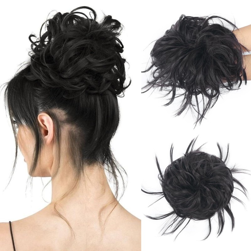 Tousled Messy Bun Hair Piece Hair Extension Tousled Updo Elastic Hair Bun Hair Piece for Women Rubber Band Updo Synthetic Hair Natural Black