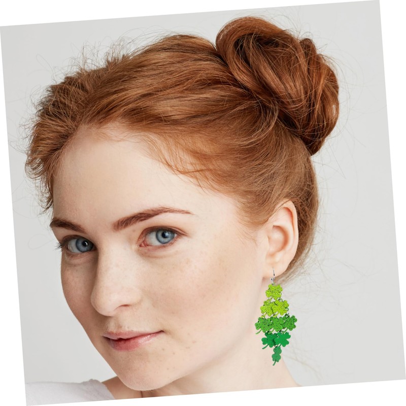 TOVINANNA 1 Pair Shamrock Dangle Earrings Funny Irish Jewelry for Patrick's Day Festivals Unique Design Lucky Green Accessories Great Present Choice for Celebrations