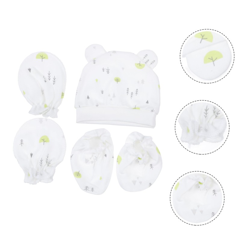 TOVINANNA 1 Set Adorable Scratch Gloves Cotton Hat Foot Covers Set Protects Newborns From Scratches Keeps Warm Winter for Showers and Celebrations Green Tree Design