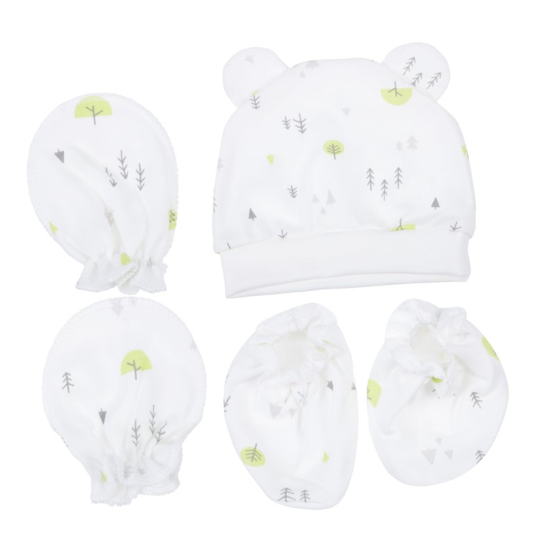 TOVINANNA 1 Set Adorable Scratch Gloves Cotton Hat Foot Covers Set Protects Newborns From Scratches Keeps Warm Winter for Showers and Celebrations Green Tree Design