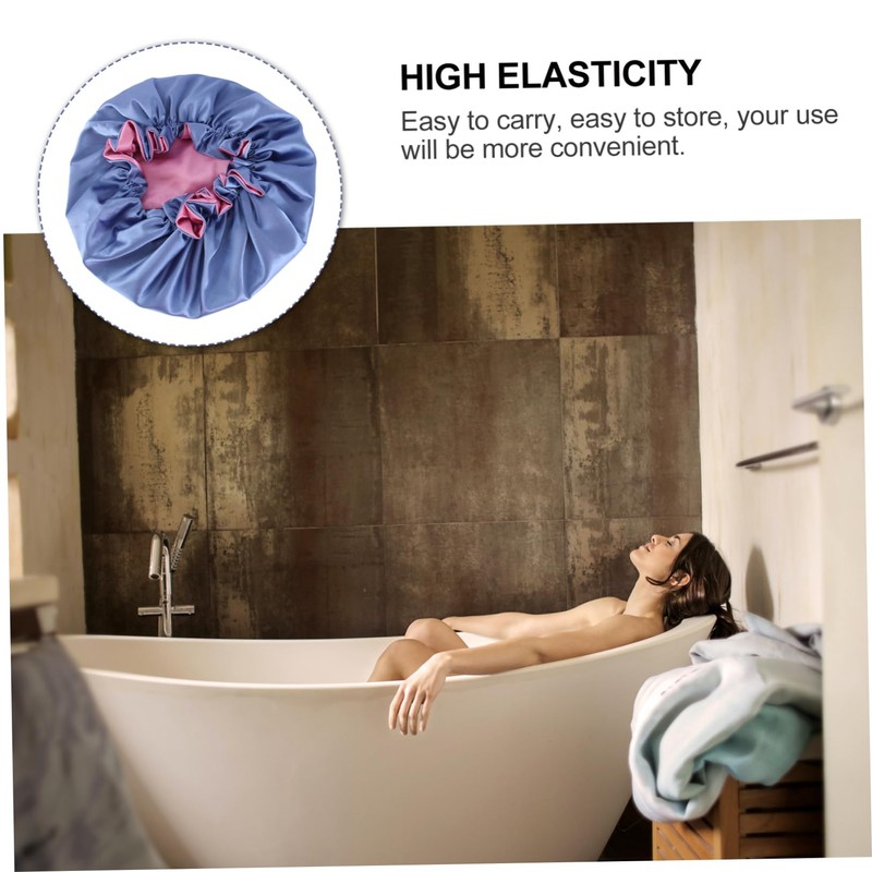 TOVINANNA 1pc Double Layer Satin Shower Cap for Women Soft Skin-friendly Bathing Accessory Elastic Design for Long Hair for Shower Spa and Home Use Large Diameter
