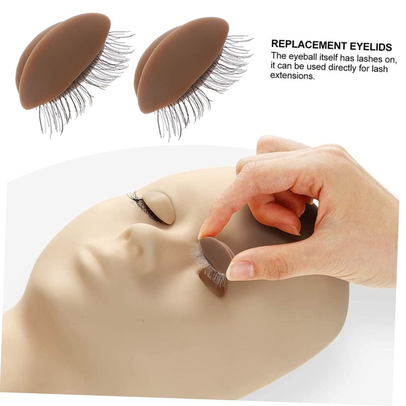 TOVINANNA 2 Sets of 6 Pairs Eyelash Extension Training Head Replacement Eyelids Tool