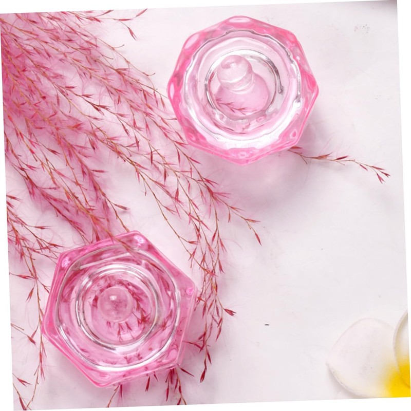 TOVINANNA 2Pcs Pink Crystal Nail Art Cleaning Cup with Lid Durable Manicure Powder Bowl Compact Nail Crystal Holder for Mixing Liquids and Washing Brushes