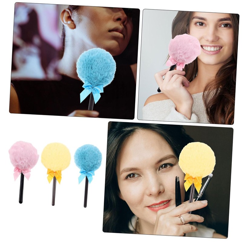TOVINANNA 3pcs Lollipop Fluffy Powder Puff Soft Reusable Makeup Tools Chic Handle for Loose Powder Application for Foundation and Blush
