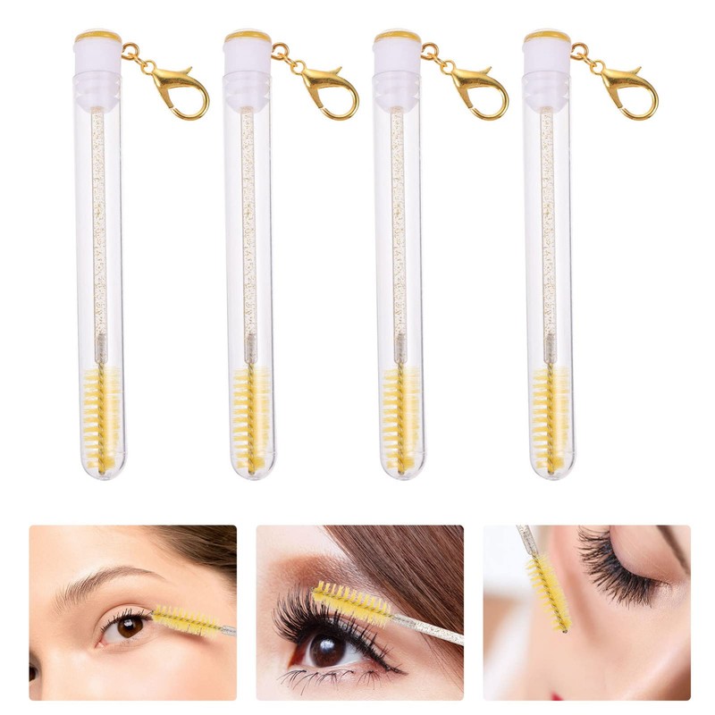 TOVINANNA 4pcs Eyelash Applicator Brush Stylish Keychain Mascara Tubes for Makeup Artists and Travel for Daily Use and Beginners