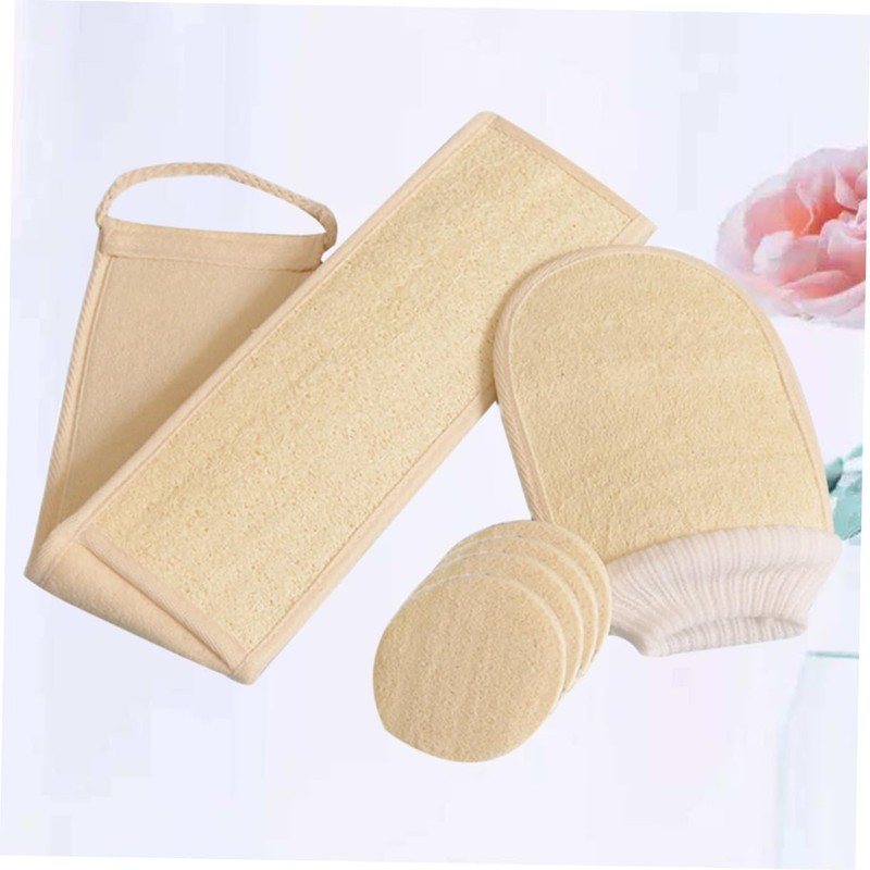 TOVINANNA 6pc Natural Loofah Bath Set Exfoliating Gloves Lotion Applicator Bath Mitt Loofah Slices for Smooth Skin Random Style