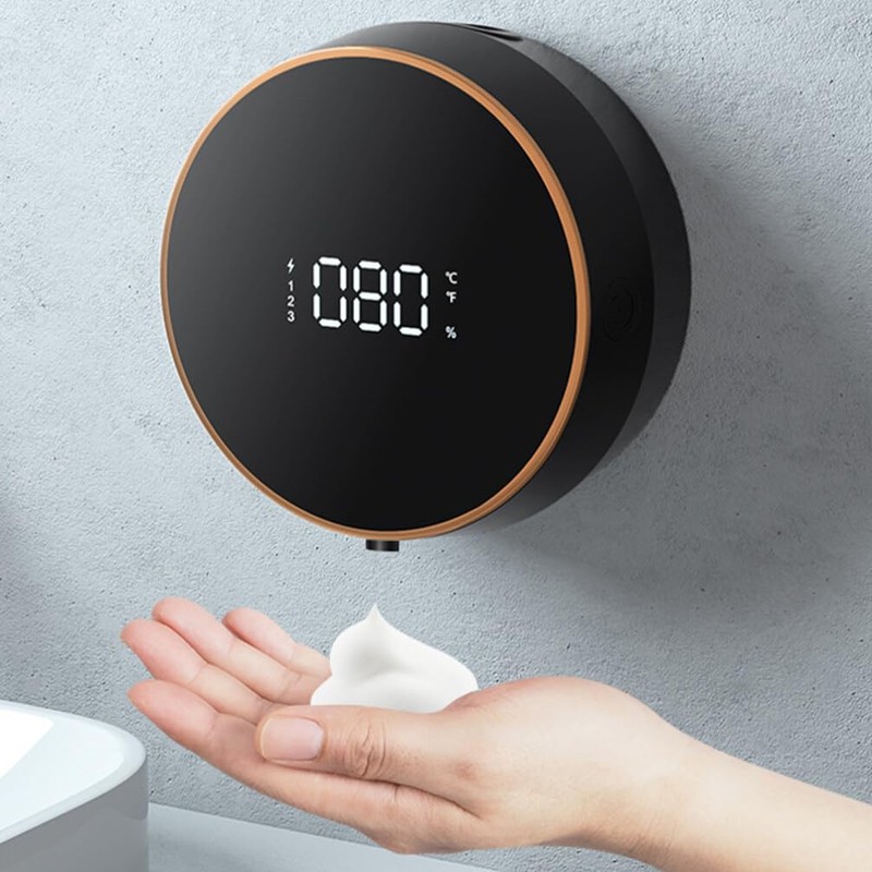 The appearance of our soap dispenser adopts material. Automatically sprays the right amount of hand soap after your hand reaches the sensing area, producing lather quickly, and the touchless soap dispenser design eliminates the need for multiple people to touch the soap bottle.