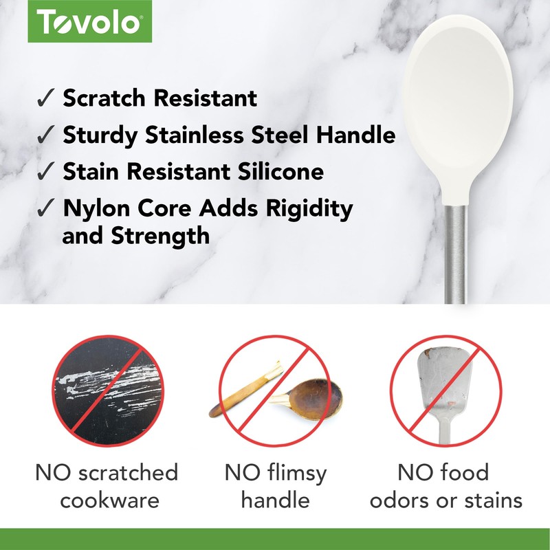 Tovolo Silicone Mixing Spoon With Stainless Steel Handle, Scratch-Resistant & Heat-Resistant Stirring Spoons, Kitchen Utensil Safe for Nonstick Cookware & Cast Iron Skillets