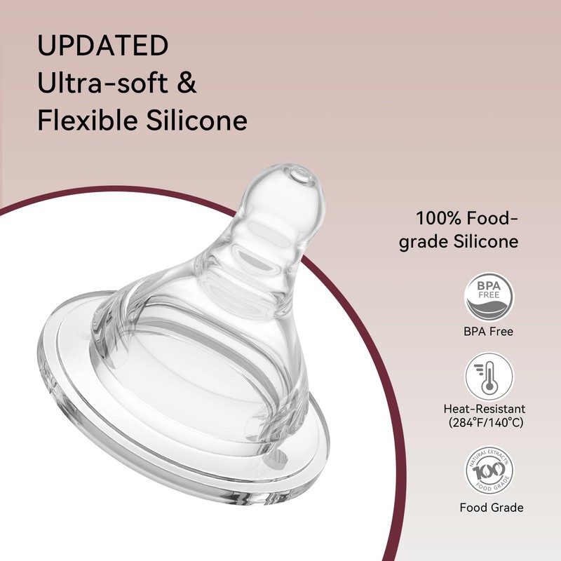Give your baby the perfect feeding experience at every stage with our premium silicone baby bottle nipples. Available in 5 flow options—Slow, Medium, Fast, and Y-Cut/Cross-Cut—these nipples are designed to match your baby’s natural feeding rhythm, from newborn days to toddler years.