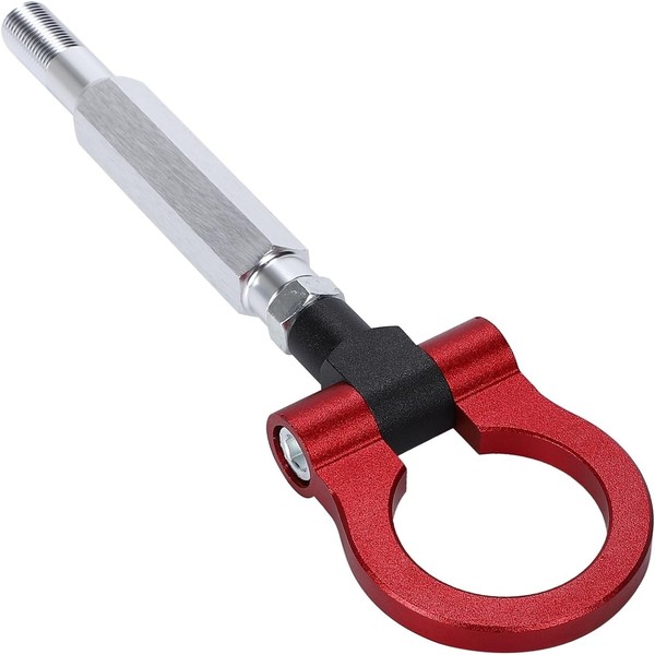 Tow Hook Ring Retractable Folding Attachment Orientation Adjustable Black Car Front Rear Bumper Trailer Aluminum Alloy General Purpose (Red)