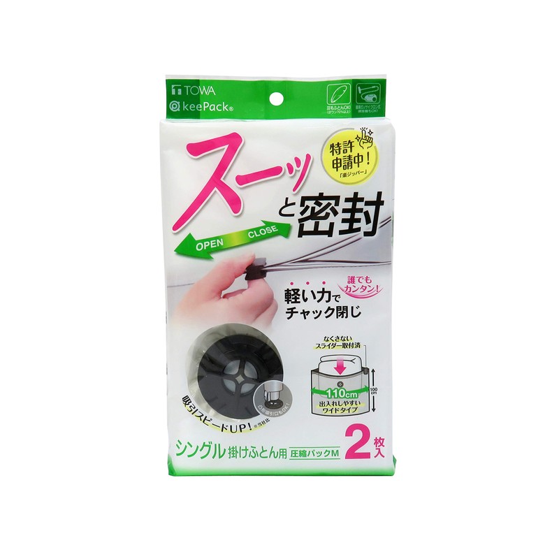 Towa Sangyo Compression Bag, Clear, Medium, Quick Seal, Easy Open/Close, Zipper Type, Pack of 2