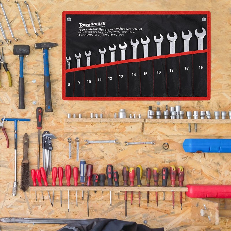 Towallmark 12-Piece Flex-Head Wrench Set, Ratcheting Combination Set, Metric ...
