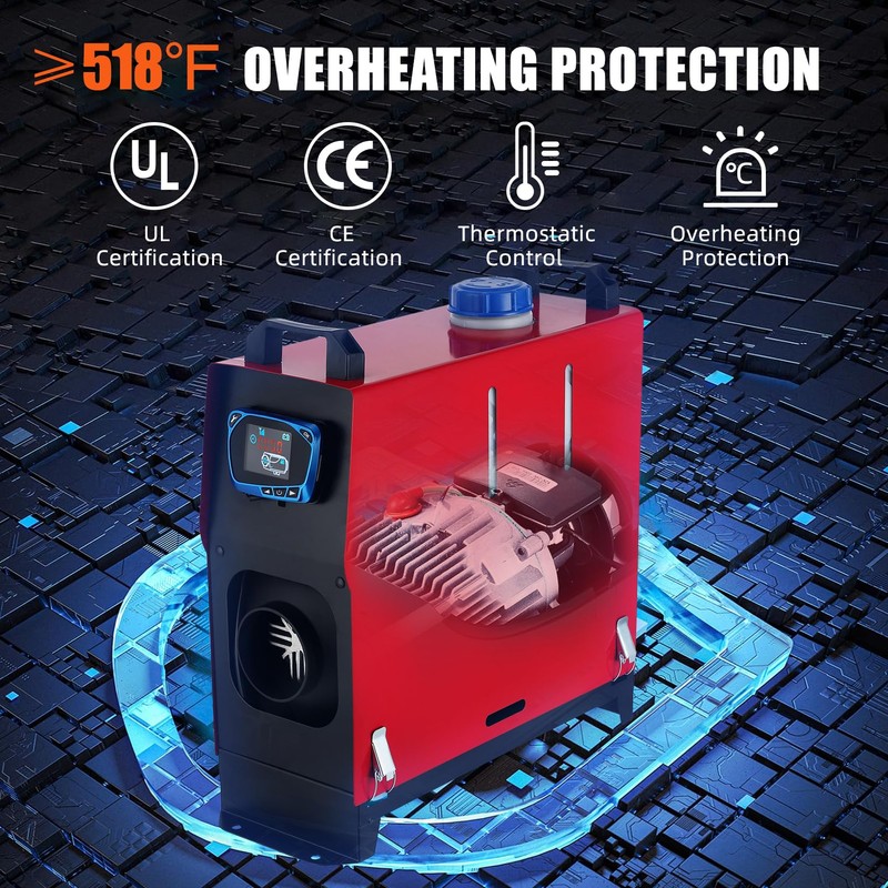 - [ Low Noise & Safe Operation ] The 12v 5kw diesel heater adopts silent fan and the oil pump adopts an improved low-frequency pulse and low vibration, which can keep the heater quiet in operation. It also features a high safety system, providing constant temperature control, timing function, preheating, and overheating protection, ensuring a safe and comfortable experience throughout the night