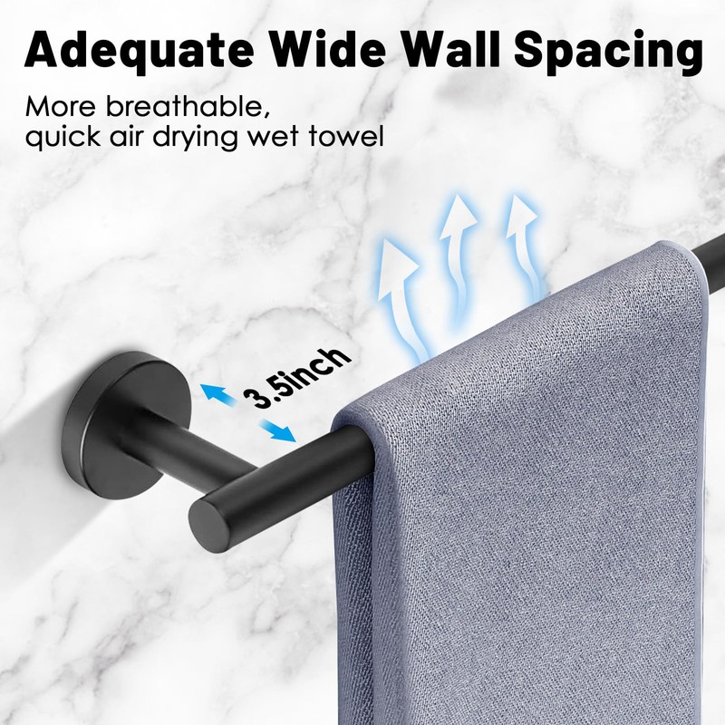 - Rustproof & Anti-corrosion Towel Bar - Our bathroom towel holder is made of premium SUS304 stainless steel material, which has outstanding performance in waterproofing and rust prevention, allowing you to use the towel rack bathroom for a long time without deformation. The smooth and round surface of this black towel bar can effectively avoid towels from getting stuck or being brushed and damaged.