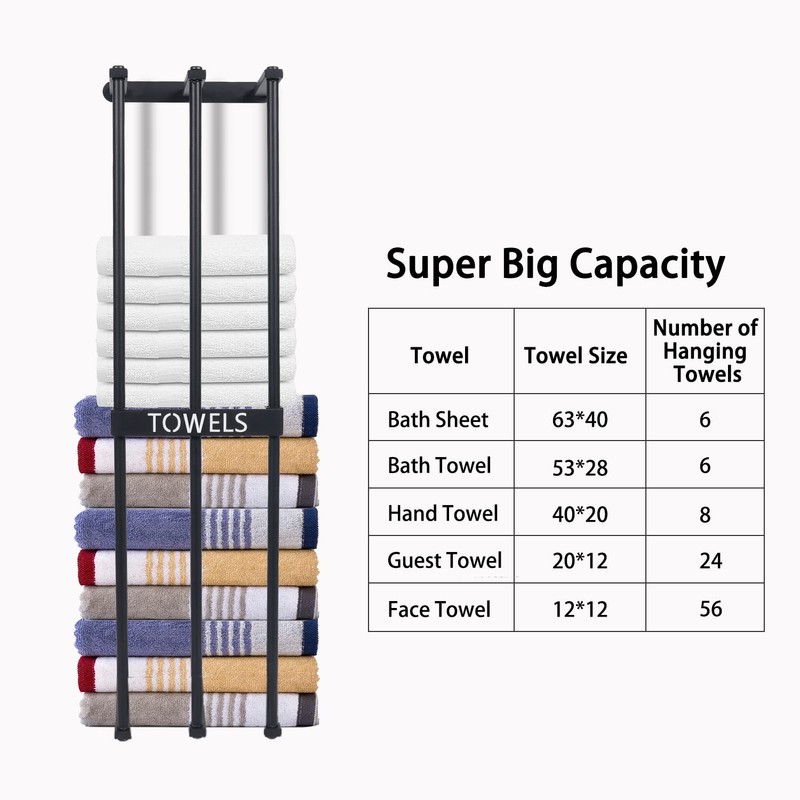 - 【New Upgrade 3 Bar Design】 Our towel rack uses 3 Bars instead of 2 bars, the 2 bar gap is too large for small size towels. The 3 bar gap is smaller, no matter how big or small the towel is placed, it will not fall!