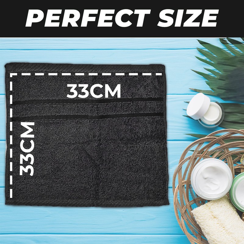 Towelogy® Fast Drying Flannel Face Cloth 100% Cotton Super Soft Premium Washcloths Facial Towels | OEKO-TEX Certified 33x33 cm (Noir, 2)