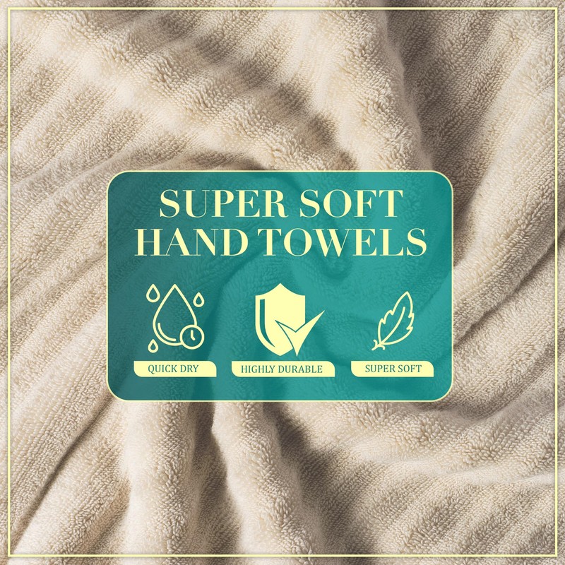 Towelogy® Luxurious Hand Towels For Bathroom - Super Soft Bamboo & Cotton Blend, Pack Of 2 Ultra Absorbent Hotel Quality Ribbed Bathroom Hand Towels Set 50x80cm (Beige)