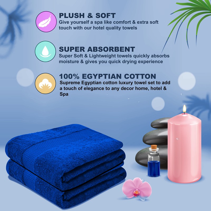 - PREMIUM 100% EGYPTIAN COTTON TOWELS – These large bath towels are made up of 100% soft ring spun cotton material for ultimate softness & maximum absorbency. These hotel quality bathroom towels are available in a wide variety of beautiful colors to suit any home, dorm or hotel bathroom. Perfect for poolside, bathroom, Beach, salon, college dorm room essential, spa, wedding registry or gym use