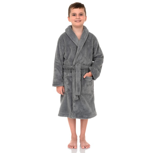 TowelSelections Big Boys’ Robe, Kids Plush Shawl Fleece Bathrobe Size 10 Alloy