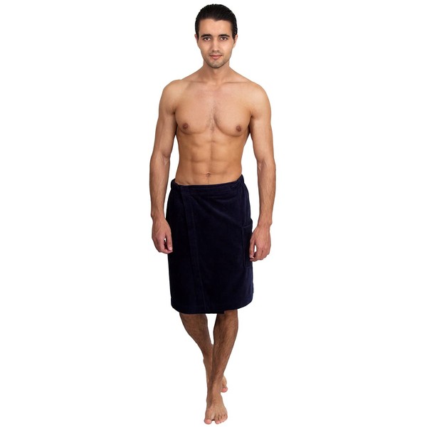 TowelSelections Cotton Terry Velour Bath Towel Shower Wrap for Men Made in Turkey Medium/Large Navy