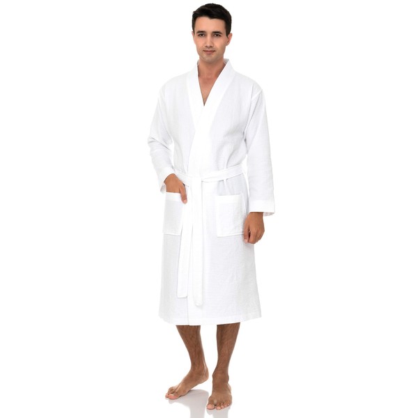 TowelSelections Mens Robe, Waffle Spa Bathrobe, Soft Kimono Bath Robe Small/Medium White