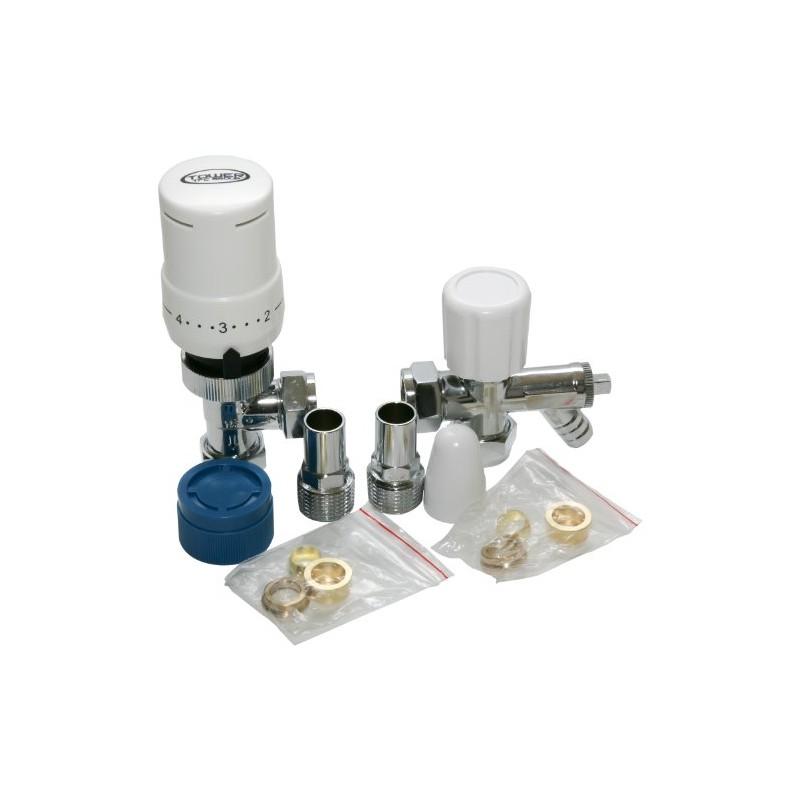 Tower Flue Components TRVPACKDO Thermostatic Radiator Valve with Drain/Off Lockshield - Chrome
