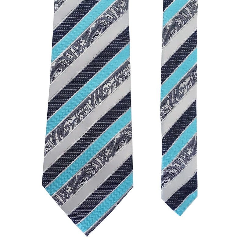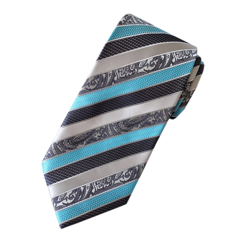 [Towergem] 紳士XLネクタイポリエステル灰色ブルー花柄超ロング160CM