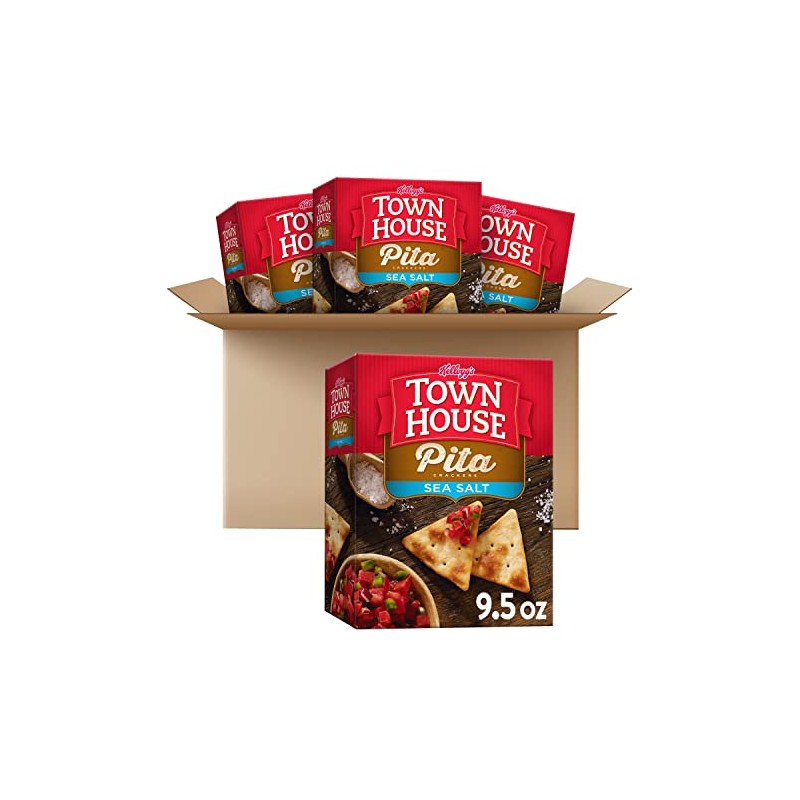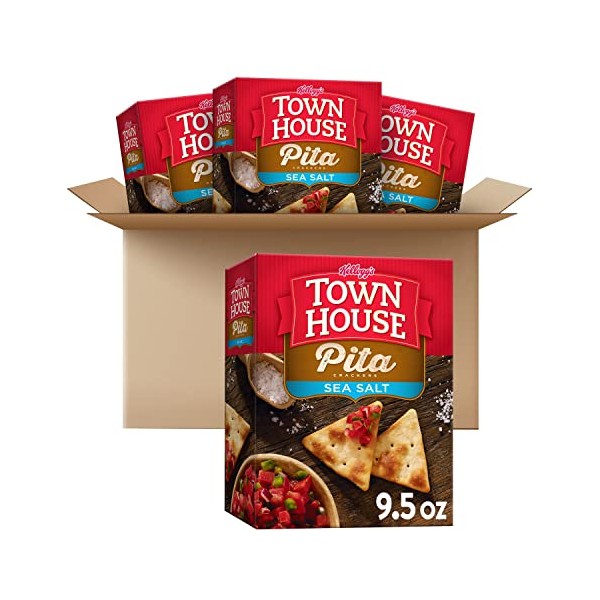 Town House Pita Crackers, Baked Snack Crackers, Lunch Snacks, Sea Salt, 38oz Case (4 Boxes)