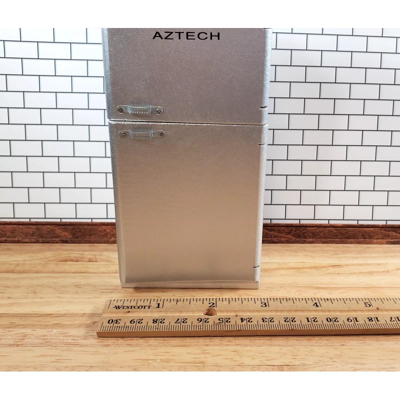 Town Square Miniatures Dollhouse Miniature Fridge 2 Door Refrigerator Silver Modern Style 1:12 Scale