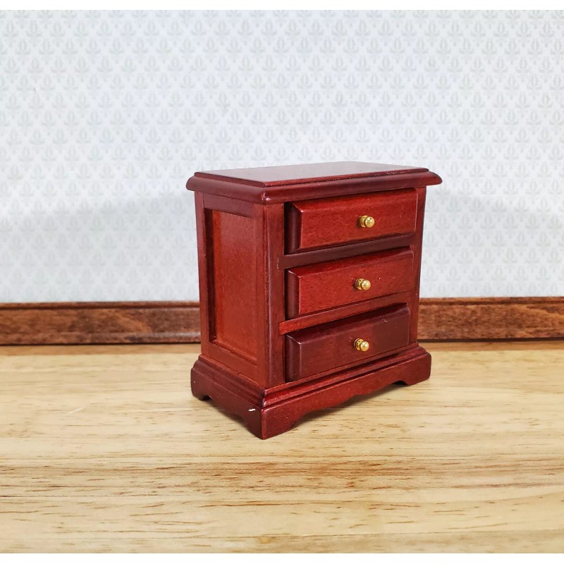 Town Square Miniatures Dollhouse Nightstand Side Table Mahogany 3 Drawer 1:12 Scale Miniature Furniture