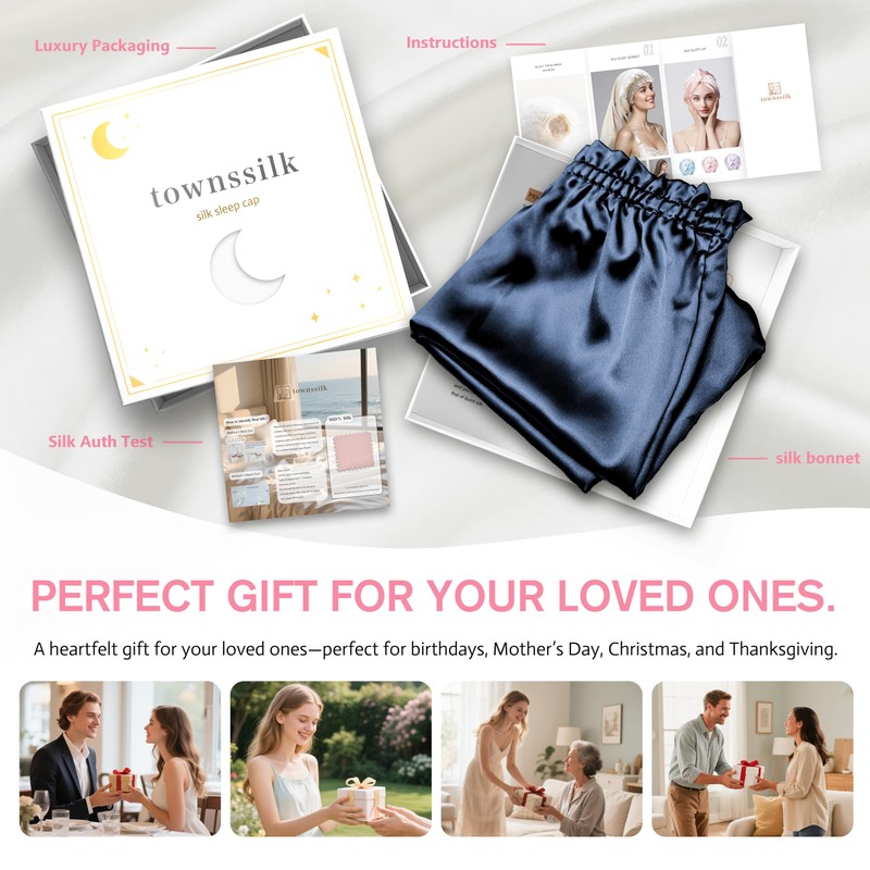 - ✅ ELEGANT GIFT BOX - The ideal gift for stylish care: this stylish silk sleep cap comes in a luxurious gift box - ideal as a special gift for women and men, for mum, sister, girlfriend or yourself. Whether for a birthday, Valentine's Day, Mother's Day, Christmas or bridesmaids - the packaging makes every unpacking a special moment. High quality gift for quality, comfort and beauty