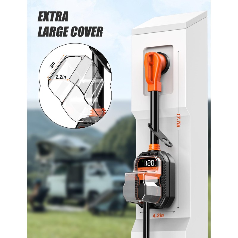 - RUGGED WEATHERPROOF DESIGN: Engineered for outdoor use, our RV 50 Amp surge protector comes with a robust IP68 waterproof cover that protects against rain, wind, and dust. Its spacious interior (2.2" width x 3" height) accommodates most RV power plugs with ease