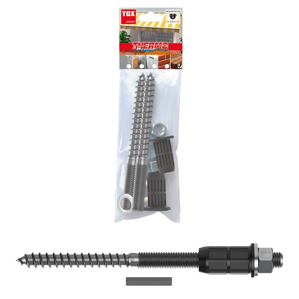 - Lieferumfang: 1x Beutel mit 2 x M12x230mm Thermo Proof Wood für 120mm Dämmstoffstärke, inkl. 1x Bit, 073671121