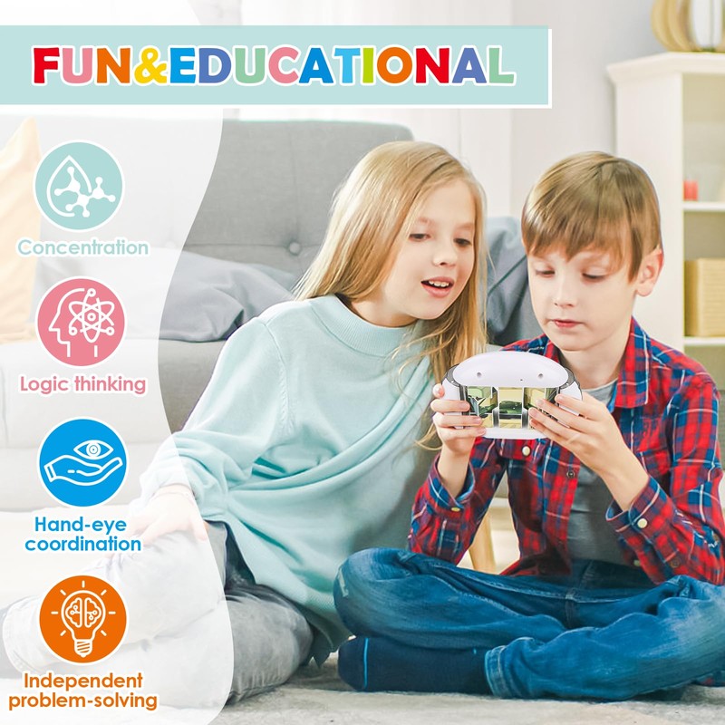 - Practical toy for trips: whether in the car or restaurant, our compact rotating puzzle can be taken anywhere, so children can play quietly. In addition, no puzzle pieces are lost with this rotating puzzle with all-in-one design