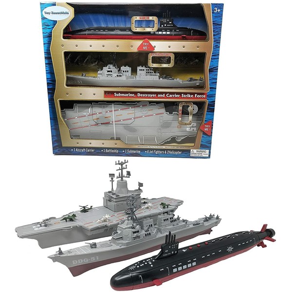 - Toy Aircraft Carrier Submarine and Battleship Destroyer Combo with 8 Mini Fighter Jets