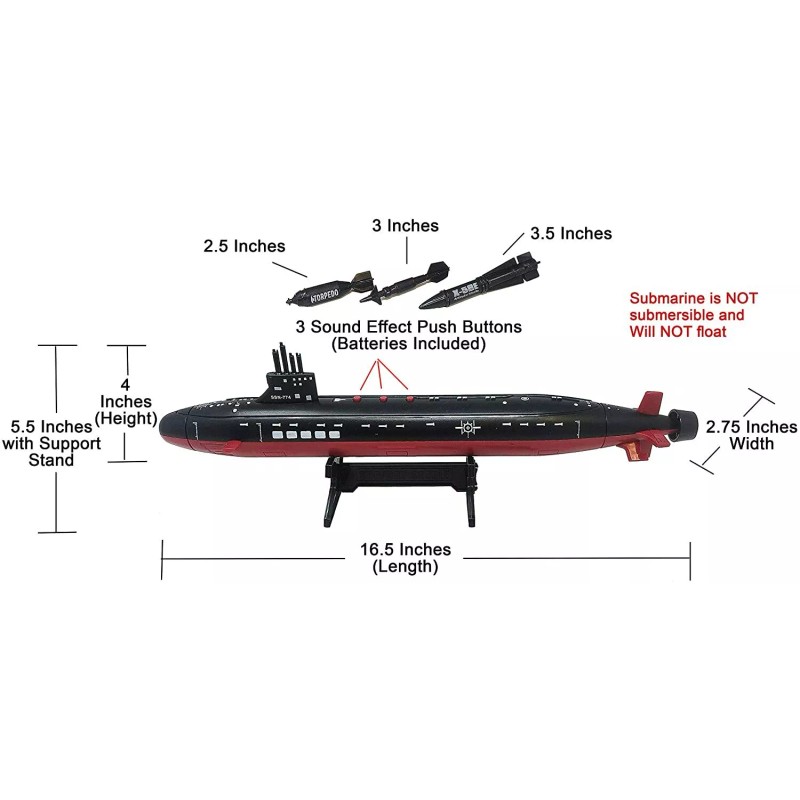 Submarine Dimensions: 16.5"L x 2.75"W x 4"H.