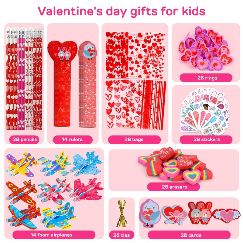 - ? Create Your Own: With 28 Valentines Day cards, Valentines goodie bags for wrapping, valentines pencils, valentines erasers, tattoo stickes and more, you can create the perfect valentines day stationary gift sets for your friends and classmates for valentines day gifts exchange.