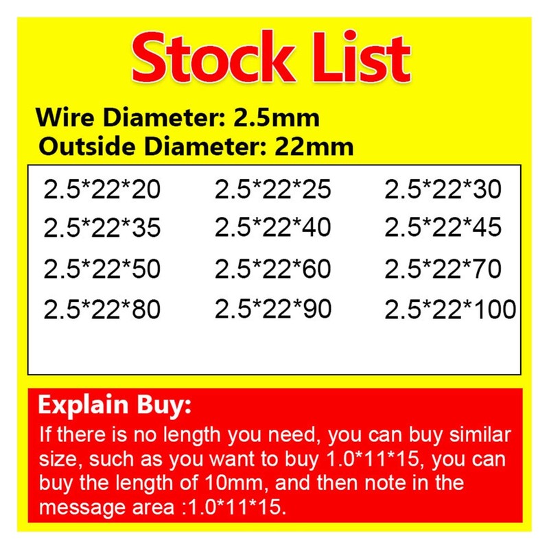 If you don’t have the required length, you can buy a similar size. For example, if you want to buy 1.0 * 11 * 15, you can buy a length of 10mm, and then write down in the message area: 1.0 * 11 * 15. (Please refer to the inventory list for purchase)
