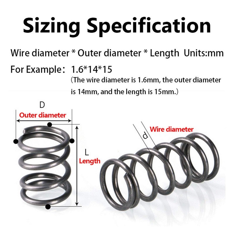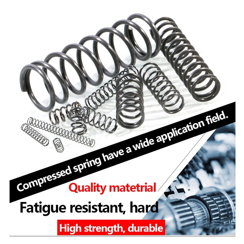 - Compression springs are made of high-quality spring steel, anti-fatigue, hard; high strength and durability. Various sizes.