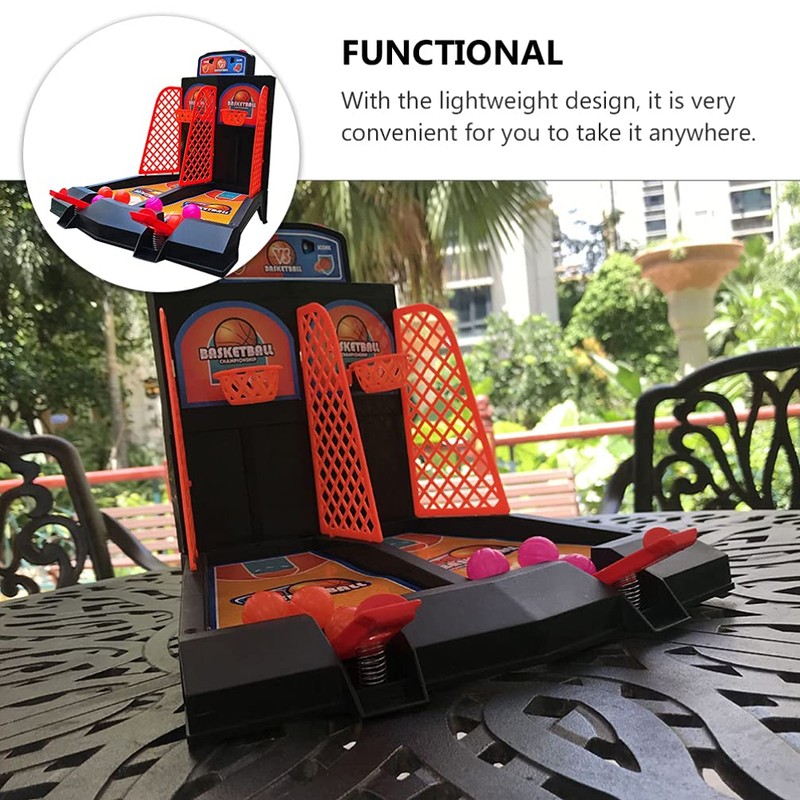 This item is a mini finger basketball game. Made of plastic material for durable and practical use. It can develop cooperation skills, good for parent- child interaction, improve dexterity, develop visual sense, and more.