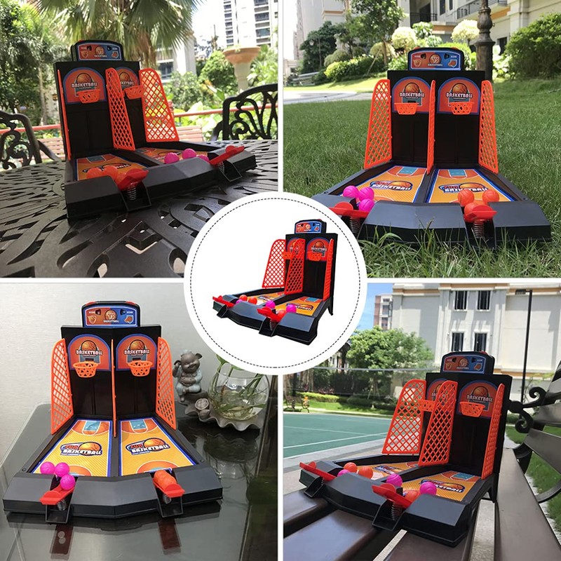 This item is a mini finger basketball game. Made of plastic material for durable and practical use. It can develop cooperation skills, good for parent- child interaction, improve dexterity, develop visual sense, and more.