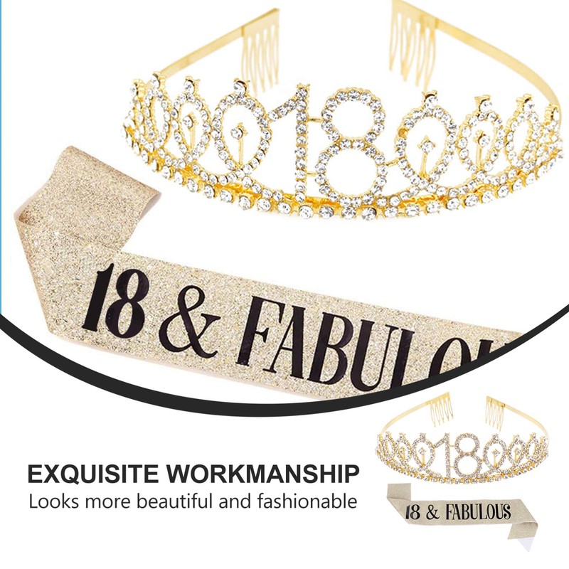 TOYANDONA Golden Rhinestone 18th Birthday Crown & Sash Set for Teenage Girls (18th Birthday)