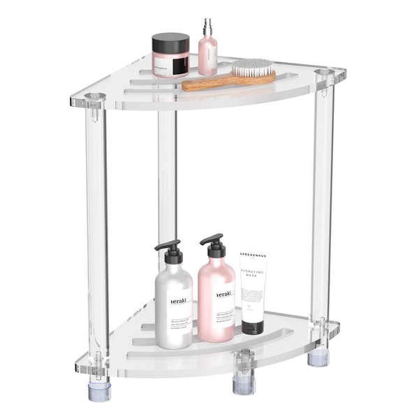 Toyarone Acrylic Corner Shower Stool, Clear Shower Bench for Inside Shower, Non-Slip Waterproof Shower Stool Towel Storage