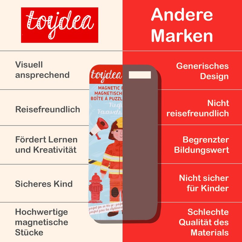 Toydea Magnetic Game Puzzle Box Fireman - Promotes Motor Skills & Imagination - Fire Brigade Toy from 3 Years, Ideal Travel Game for Children - Fire Brigade Gift for Boys and Girls