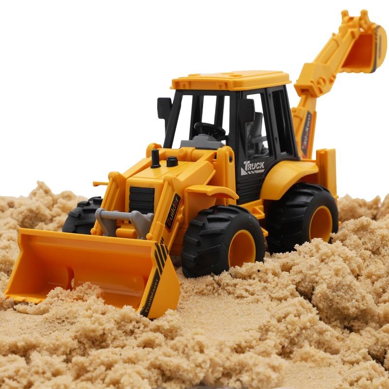 - This friction powered backhoe loader has a movable front loader and backhoe for more realistic playtime.