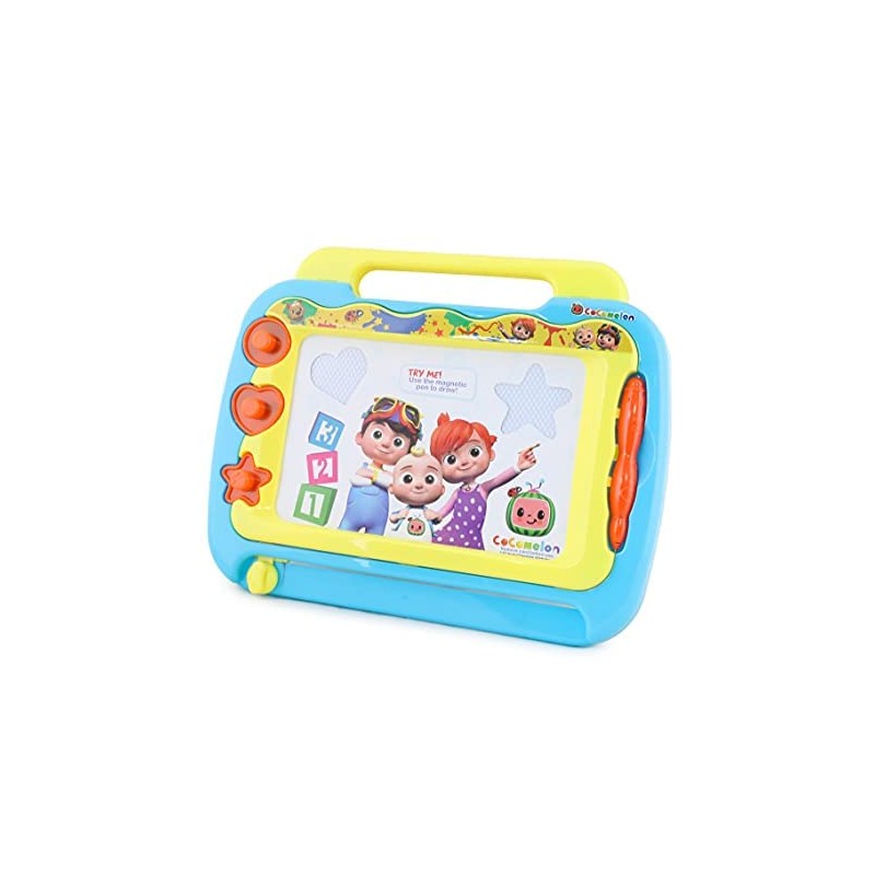 - Its time to get creative with this colourful magnetic drawing board with your favourtie Cocomelon characters! What better way to get your little one to get artistic and start developing writing skills.