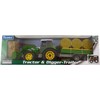 Toyland Green Tractor and Digger with Bale Trailer Set 1:32 Scale (GREEN)