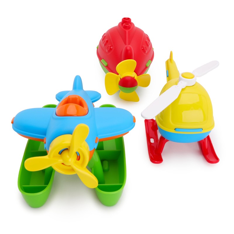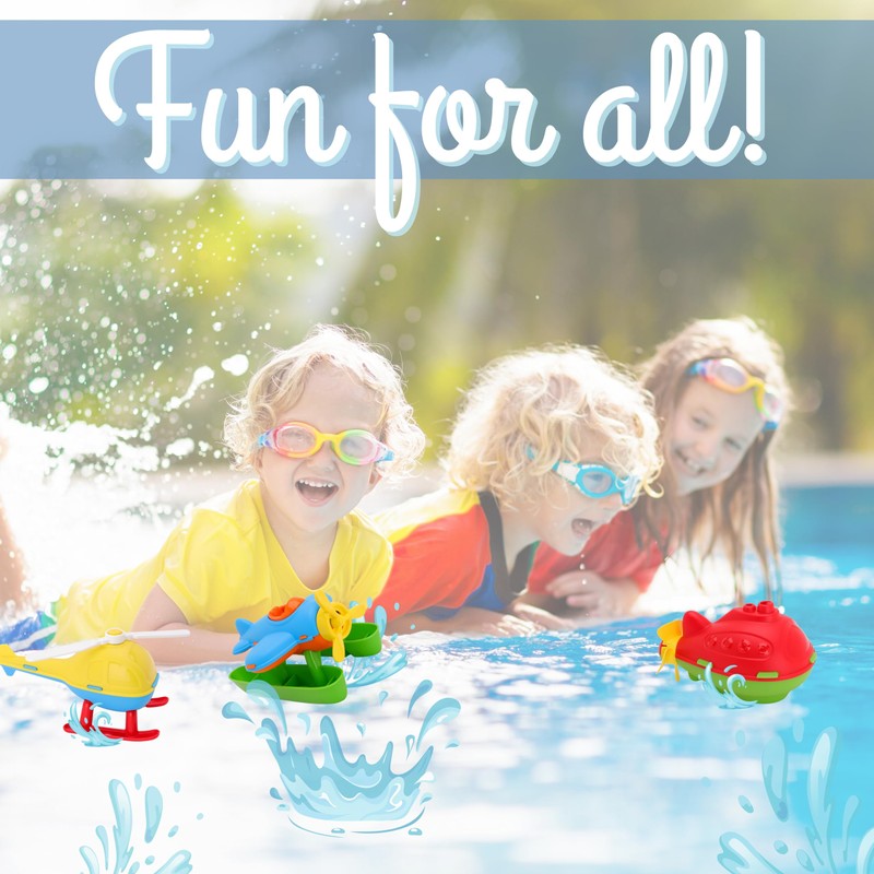 - You will receive 1 helicopter measuring 17.5cm, 1 seaplane measuring 16cm & 1 submarine measuring 16cm. Their lightweight design makes them easy for little hands to grasp, perfect for both bathtime splashes and play outside the tub