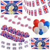 - Contents: You will recieve 12 bowler hats, 1 5ft x3ft flag, 1 5ft x 3ft banner, 2 x 20ft Queen bunting, 12 Hand flags, 2 x 4m bunting and 30 red, white and blue balloons.